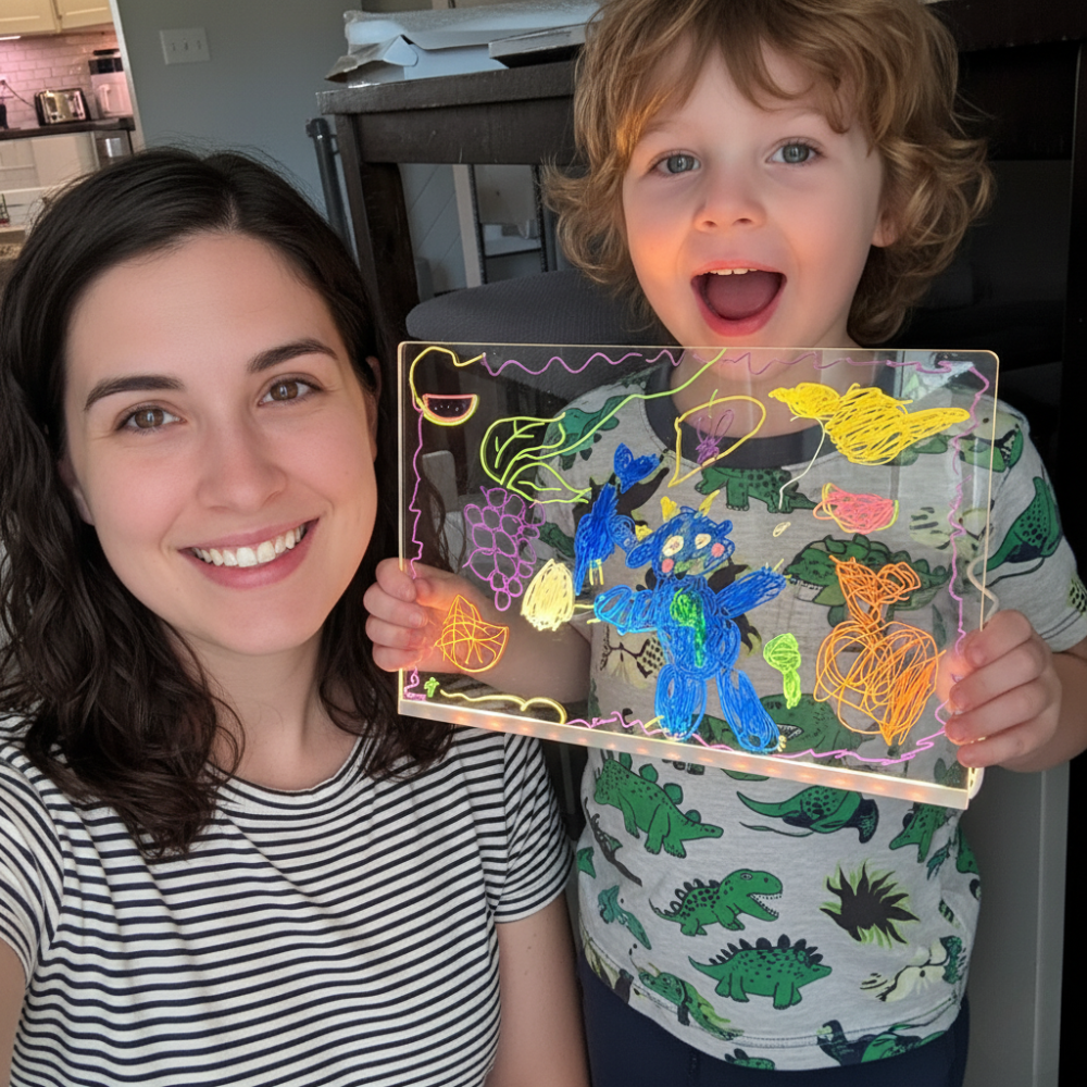 This reusable LED board lets kids draw, glow, and wipe clean in seconds, giving them endless fun without the clutter.