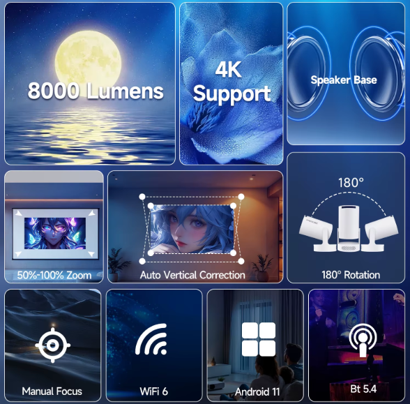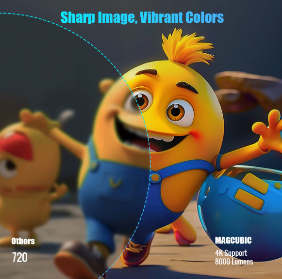 Unlike standard projectors that look dull or blurry, the PhotoBeam MagCubic Pro+ Mini Projector delivers 4K support with 8000 lumens of brightness, giving you crisp detail and rich, vivid colors. Every scene looks brighter, sharper, and closer to a real cinema experience.