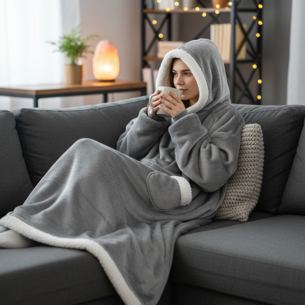From movie marathons to lazy Sundays, the CuddleCloud Hoodie Blanket makes every moment at home better. With a roomy hood and deep pocket, you can stay warm, stash your essentials, and relax with total ease.